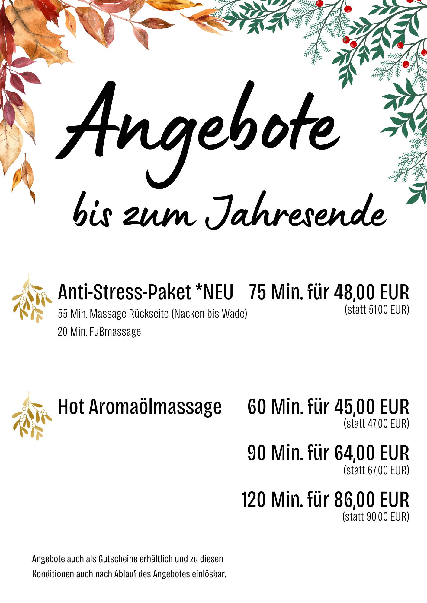 Umso wichtiger ist es, Momente der Ruhe zu finden, um Körper, Geist und Seele eine Pause und Erholung zu gönnen. Entkommen Sie mit den folgenden Anwendungen für eine kurze Zeit dem Alltagsstress, entspannen Sie sich und schöpfen neue Kraft.